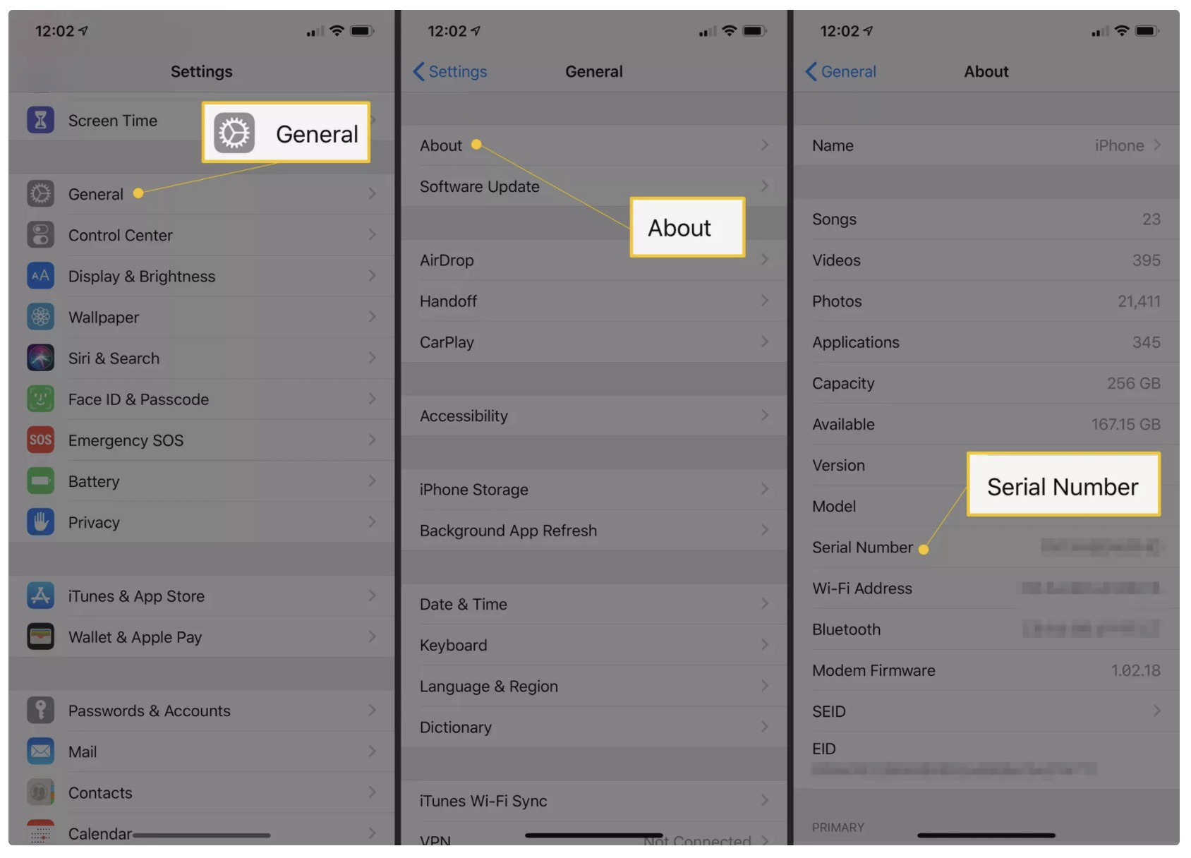 - iPhone’unuzun seri numarasını bularak başlayın. Seri numarasını bulmanın iki yolu vardır: